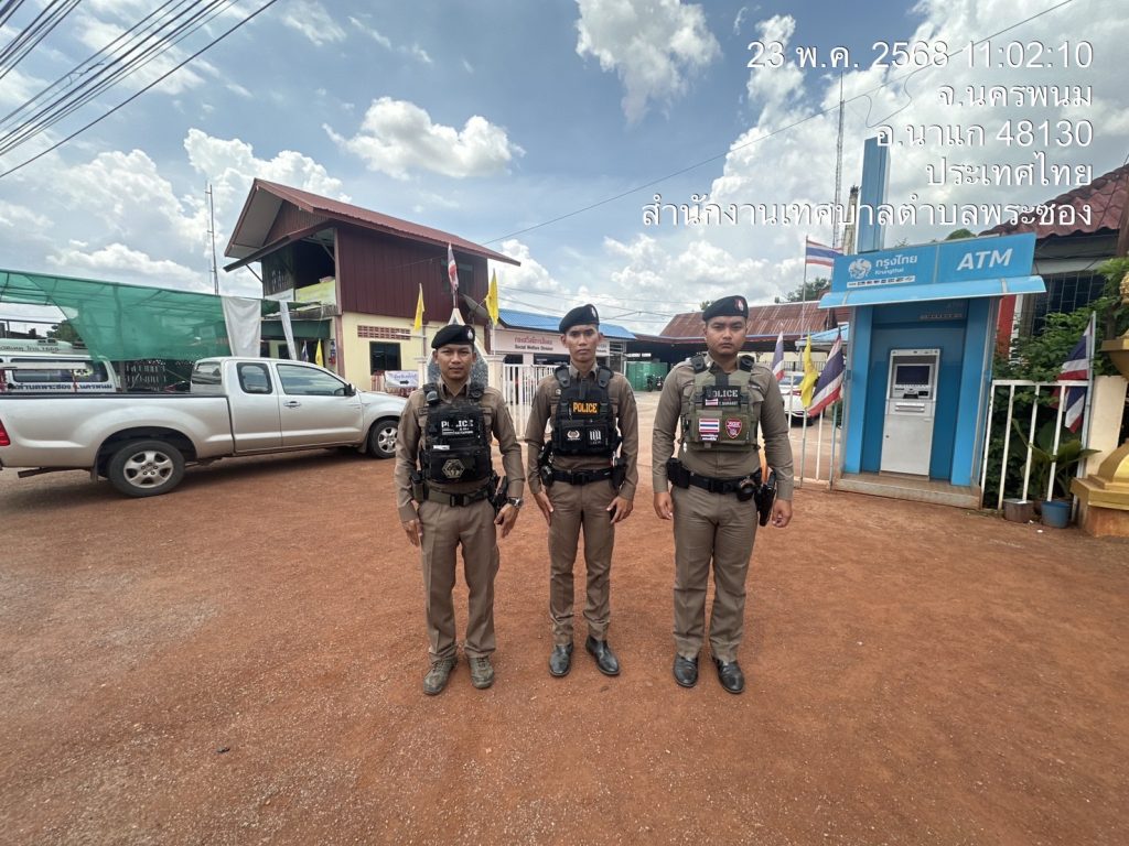 ตรวจจุดเสี่ยงจุดล่อแหลม 23 พฤษภาคม 2568 โดย admin / ข่าวสาร วันนี้ ( 23 พฤษภาคม 2568 )เวลา 09.30 น.ภายใต้การอำนวยการของ พล.ต.ต.ศักดิ์ชาย สาดมะเริงผบก.ภ.จว.นครพนม พ.ต.อ.สำเนาว์ กรุยกระโทกรอง ผบก.ภ.จว.นครพนม พ.ต.ท.เศรษฐี ศรีสมพงษ์ สว.สภ.พระซองมอบหมายให้ ร.ต.อ.ศราวุฒิ อภัยกาวี รอง สว.สส.สภ.พระซอง ปฏิบัติหน้าที่ร้อยเวร 20 พร้อมด้วยสายตรวจรถยนต์ ได้ออก ว.4 ตรวจจุดเสี่ยงจุดล่อแหลม -เซเว่น-ป้อมนาเหนือ-ATM -รอยต่อเขตุรับผิดชอบจุดอื่นๆในเขตพื้นที่รับผิดชอบเพื่อป้องกันเหตุ ในพื้นที่รับผิดชอบ ว.24 นี้ เหตุการณ์ทั่วไปปกติ FacebookFacebookXXLINELine