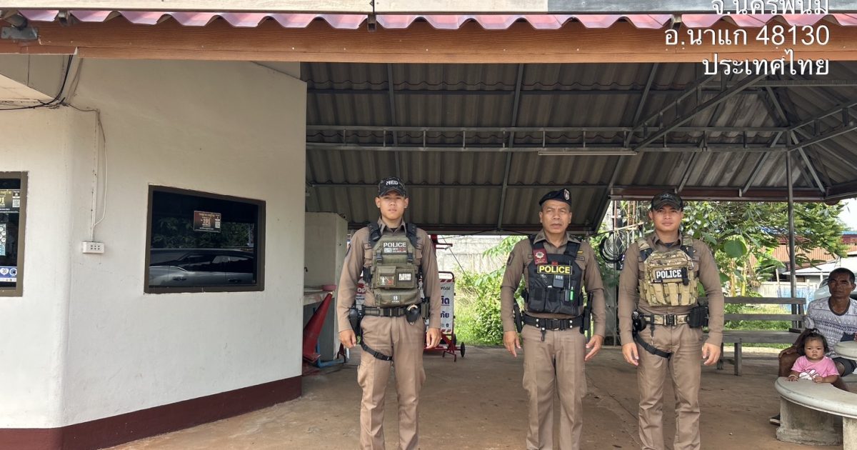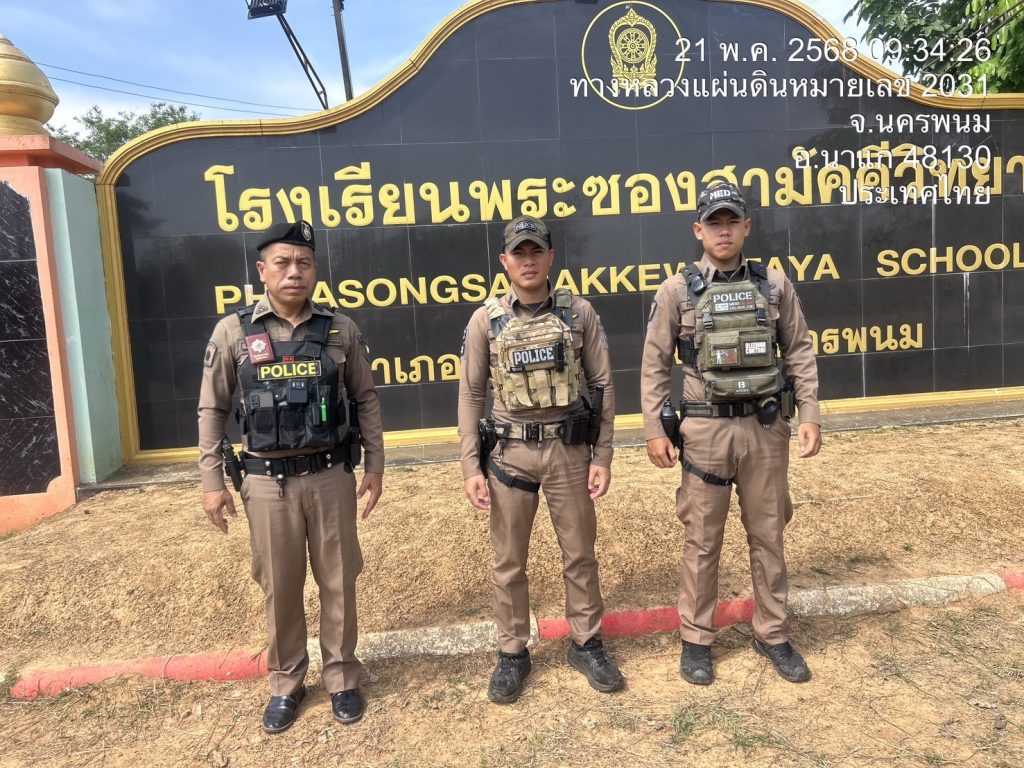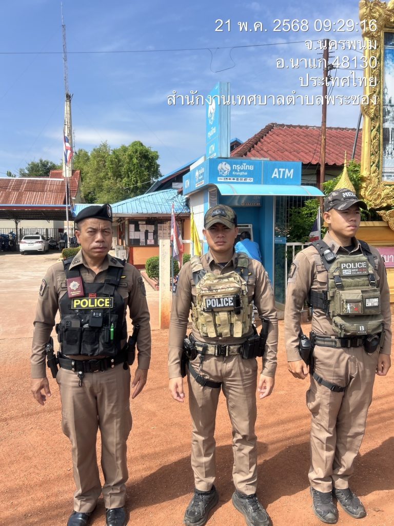 ตรวจจุดเสี่ยงจุดล่อแหลม 21 พฤษภาคม 2568 โดย admin / ข่าวสาร วันนี้ (21 พฤษภาคม 2568 )เวลา 09.30 น.ภายใต้การอำนวยการของ พล.ต.ต.ศักดิ์ชาย สาดมะเริงผบก.ภ.จว.นครพนม พ.ต.อ.สำเนาว์ กรุยกระโทกรอง ผบก.ภ.จว.นครพนม พ.ต.ท.เศรษฐี ศรีสมพงษ์ สว.สภ.พระซองมอบหมายให้ ร.ต.อ.โยต้า ถานันรอง สวป สภ.พระซอง ปฏิบัติหน้าที่ร้อยเวร 20 พร้อมด้วยสายตรวจรถยนต์ ได้ออก ว.4 ตรวจจุดเสี่ยงจุดล่อแหลม -เซเว่น-โรงเรียนพระซองสา-ATM -ป้อมนาเหนือจุดอื่นๆในเขตพื้นที่รับผิดชอบเพื่อป้องกันเหตุ ในพื้นที่รับผิดชอบ ว.24 นี้ เหตุการณ์ทั่วไปปกติ