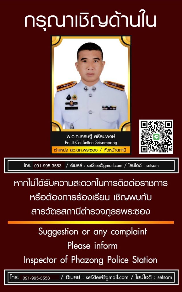 ช่องทางการติดต่อหัวหน้าสถานี หากมีเรื่องต้องการร้องเรียน