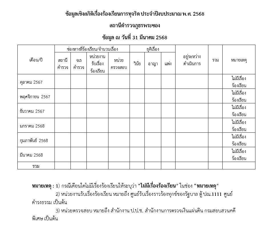 ข้อมูลเชิงสถิติเรื่องร้องเรียนการทุจริตในรอบ 6 เดือน ประจำปีงบประมาณ 2568